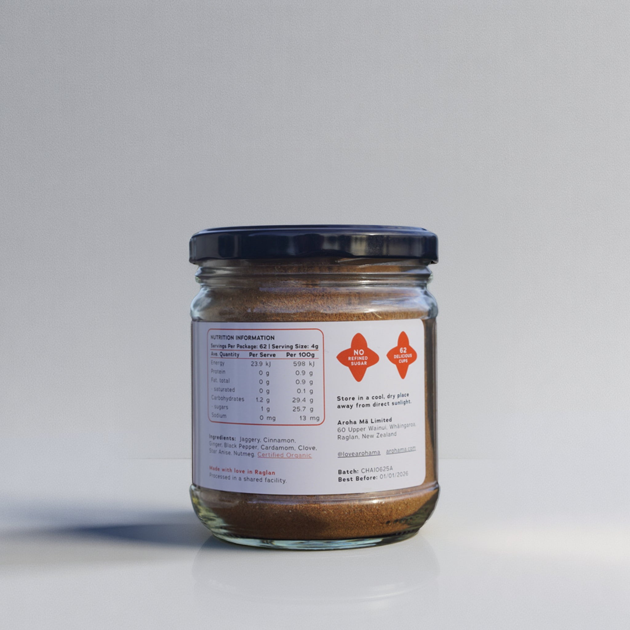 Jaggery, Cinnamon, Ginger, Black Pepper, Cardamom, Clove, Star Anise, Nutmeg.